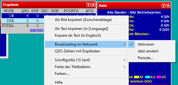um die Bordcast Informationen der Logprogramme Win-Test+ zu aktivieren, sind folgende Einstellungen notwendig: